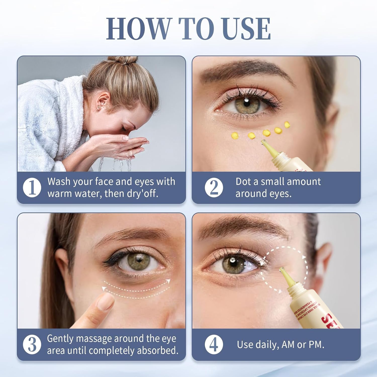 ① Apply a pea-sized amount to the "three spots" under your eyes 🟢